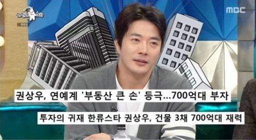 Bên cạnh "mợ chảnh" Jun Ji Hyun, Kwon Sang-woo cũng được biết đến là tài tử "khổng lồ" của "vùng đất bất động sản". Theo đó, nam tài tử "Nấc thang lên thiên đường gần đây nhất đã mua một tòa nhà 10 tầng lớn ở Deungchon-dong với giá 28 tỷ Won (535 tỷ đồng), trong đó 24 tỷ Won (khoảng 458 tỷ đồng), tương đương 86%, là các khoản vay ngân hàng. Ngân hàng giải thích rằng các khoản vay như vậy là có thể được duyệt, bởi Kwon Sang Woo là một trong những khách hàng VIP của ngân hàng.