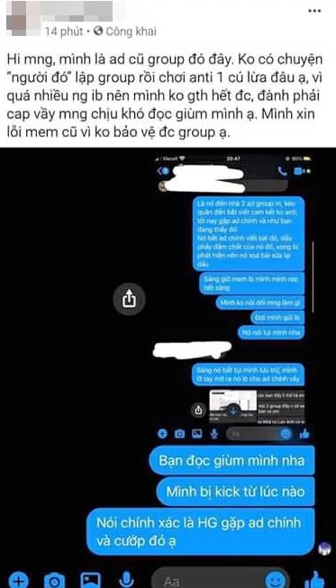 Tuy nhiên câu chuyện chưa dừng lại ở đó khi mới đây một người này tự nhận là admin cũ của group anti-fan Hương Giang đã đăng tải bài viết xung quanh việc admin chính chia sẻ lời xin lỗi. Người này nói rõ, không phải tự dưng mà admin chính phải đăng bài đính chính, mà là do bị phía Hương Giang tới tận nhà ép viết.