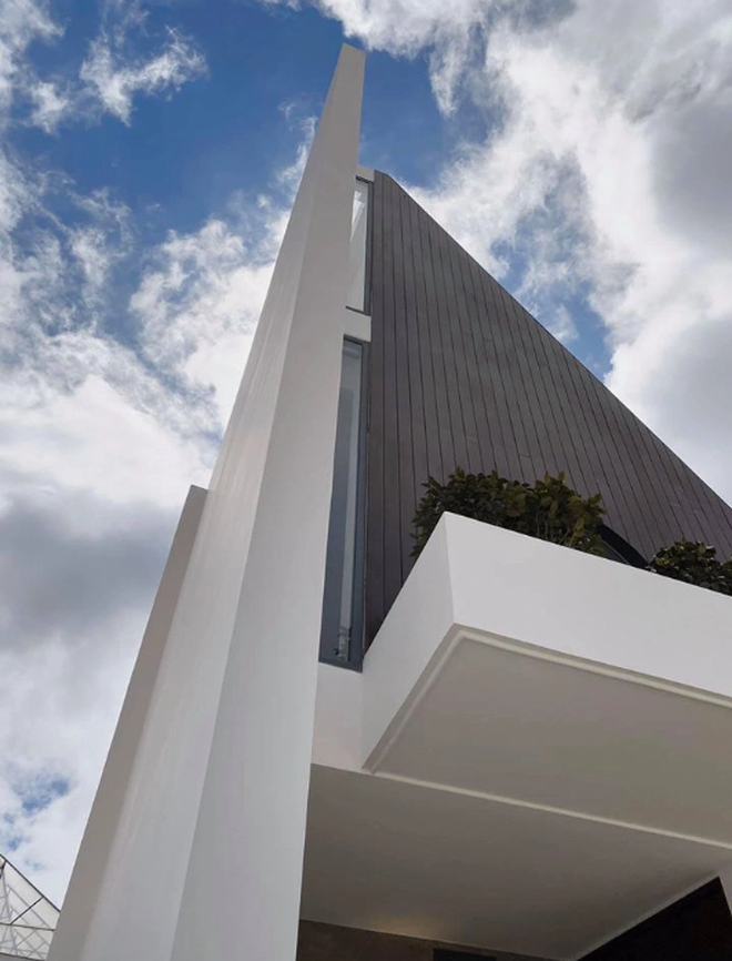 Dù không sinh sống tại căn nhà này, nhưng Tóc Tiên vẫn đầu tư cực mạnh tay để thiết kế một không gian đẹp và thoải mái đúng nghĩa. Căn biệt thự được thiết kế theo phong cách tối giản, hiện đại với những đường nét góc cạnh cùng gam màu nâu - trắng ấm áp và tinh tế. Phần lớn các chi tiết xây dựng bên ngoài cũng như nội thất bên trong căn nhà đều được ốp bằng chất liệu gỗ cao cấp. Mọi không gian đều được phân bổ diện tích rộng rãi và thoáng mát. Ngoài phòng ngủ, phòng khách, phòng ăn còn có cả bể bơi trên tầng thượng.