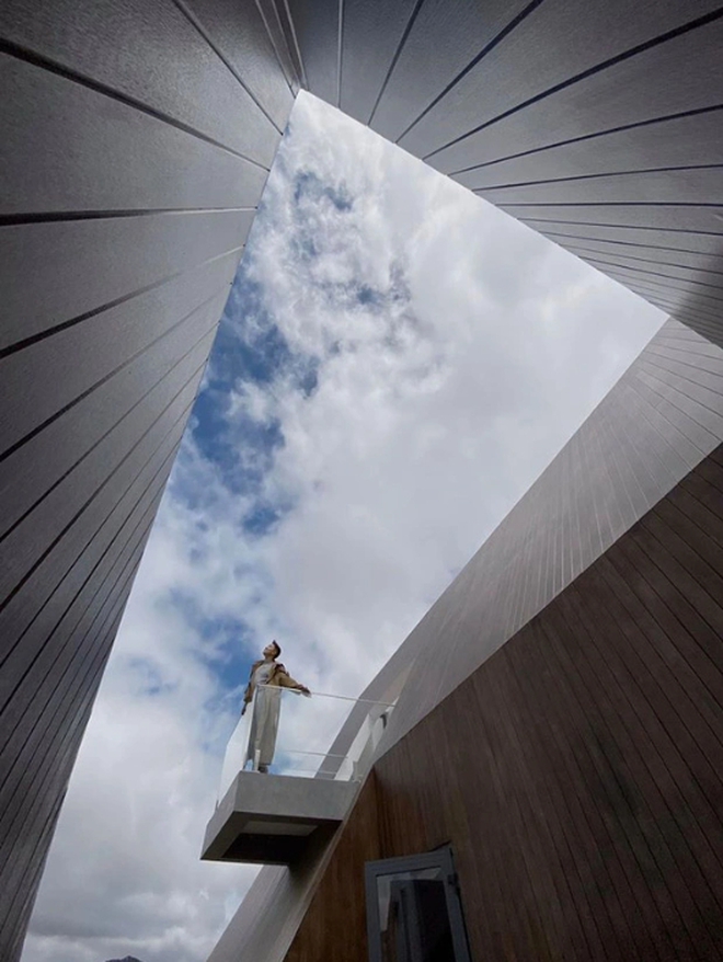 Để không gian bớt bí bách, cặp vợ chồng không quên thiết kế thêm nhiều cửa sổ với các hình dạng khác nhau. Từ ban công của căn nhà, gia chủ vừa có thể ngắm trọn view hồ và rừng thông bạt ngàn tại Đà Lạt, vừa có không gian ''sống ảo'' cực xịn xò.
