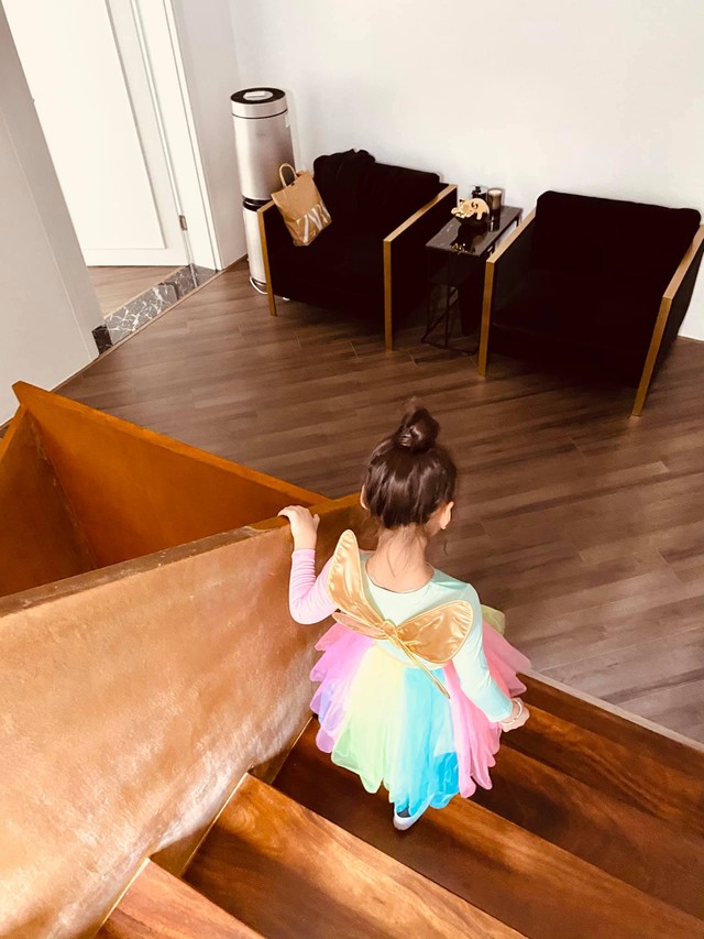 Bên trong biệt thự của Ngọc Trinh còn có 1 không gian riêng cho ''ái nữ'' tập múa ballet. Căn phòng thoáng rộng với nhiều bức họa bắt mắt được treo trên tường, tạo không gian học tập truyền cảm hứng cho con gái. Khu vực bếp trong biệt thự mang tông đen tuyền hiện đại. Cô cũng trang bị rất nhiều thiết bị điện tử thiết yếu như: tủ lạnh, lò nướng, lò vi sóng, máy hút mùi,... để hỗ trợ việc nấu nướng hàng ngày.