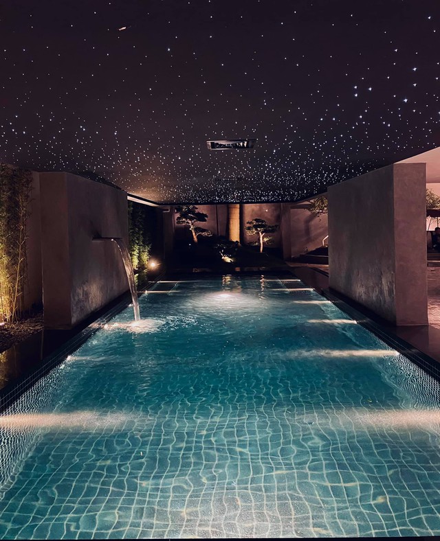 Lần khác, Ngọc Trinh chia sẻ hình ảnh một căn phòng trong nhà treo đầy tranh. Nữ BTV chọn cách trưng tranh đơn giản, không quá cầu kỳ nhưng vẫn toát lên vẻ đẹp đầy tính nghệ thuật, có thể khiến nhiều người lầm tưởng là một triển lãm cao cấp nào đó. Bên cạnh phòng tranh, căn biệt thự của BTV Ngọc Trinh còn có bể bơi rộng rãi để phục vụ nhu cầu vận động, thư giãn của gia chủ. Bể bơi của người đẹp này được trang trí cầu kì với rất nhiều đèn lấp lánh trên trần và cây cảnh xung quanh.