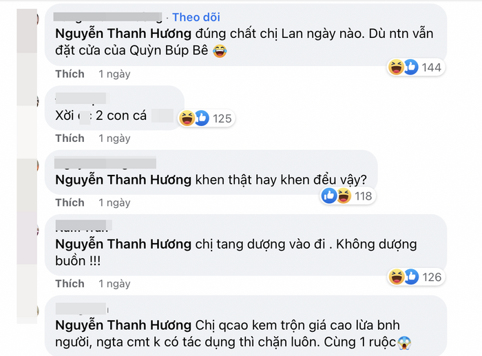 Cụ thể, Thanh Hương đã để lại bình luận với nội dung: "Xời, tuyệt vời", bên dưới bài đăng công khai chuyện hẹn hò của Phương Oanh. Lời chúc mừng của "Lan cave" phim Quỳnh Búp Bê trở thành tâm điểm chú ý với cộng đồng mạng. Hơn 2 nghìn lượt bày tỏ cảm xúc và 500 phản hồi từ netizen dành cho bình luận của Thanh Hương kèm những lời lẽ "ném đá" khá nặng nề.