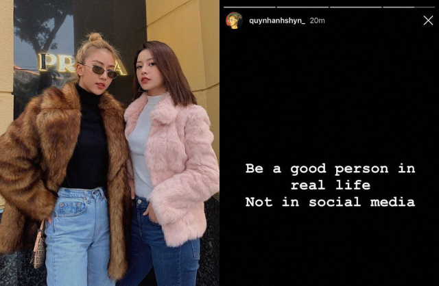 Tuy nhiên, vào giữa năm 2020, người hâm mộ bất ngờ nhận ra tín hiệu lạ của mối quan hệ này. Quỳnh Anh Shyn đột ngột bỏ theo dõi Chi Pu trên Instagram - 1 hành động được cho là ngầm ám chỉ sự rạn nứt. Không lâu sau đó, Quỳnh Anh Shyn đăng tải dòng trạng thái đầy ẩn ý: "Be a good person in real life, not in social media" (Hãy là một người tốt ngoài đời thực, đừng chỉ trên mạng xã hội). Dòng trạng thái này được cho là "lời nhắn gửi" của Quỳnh Anh Shyn đến Chi Pu.