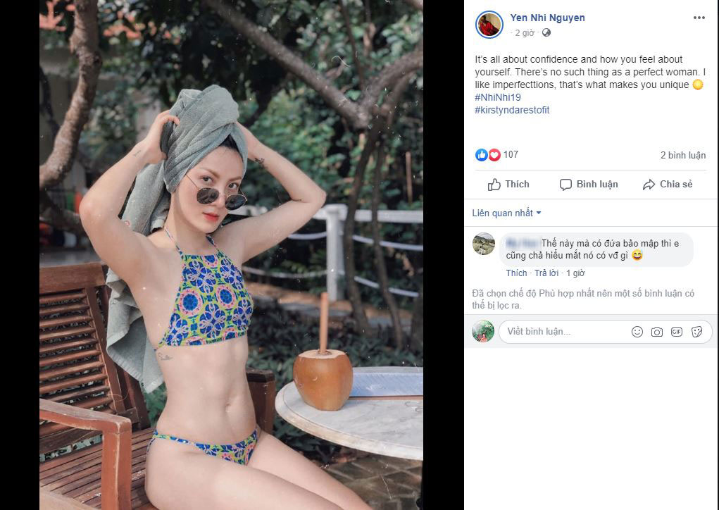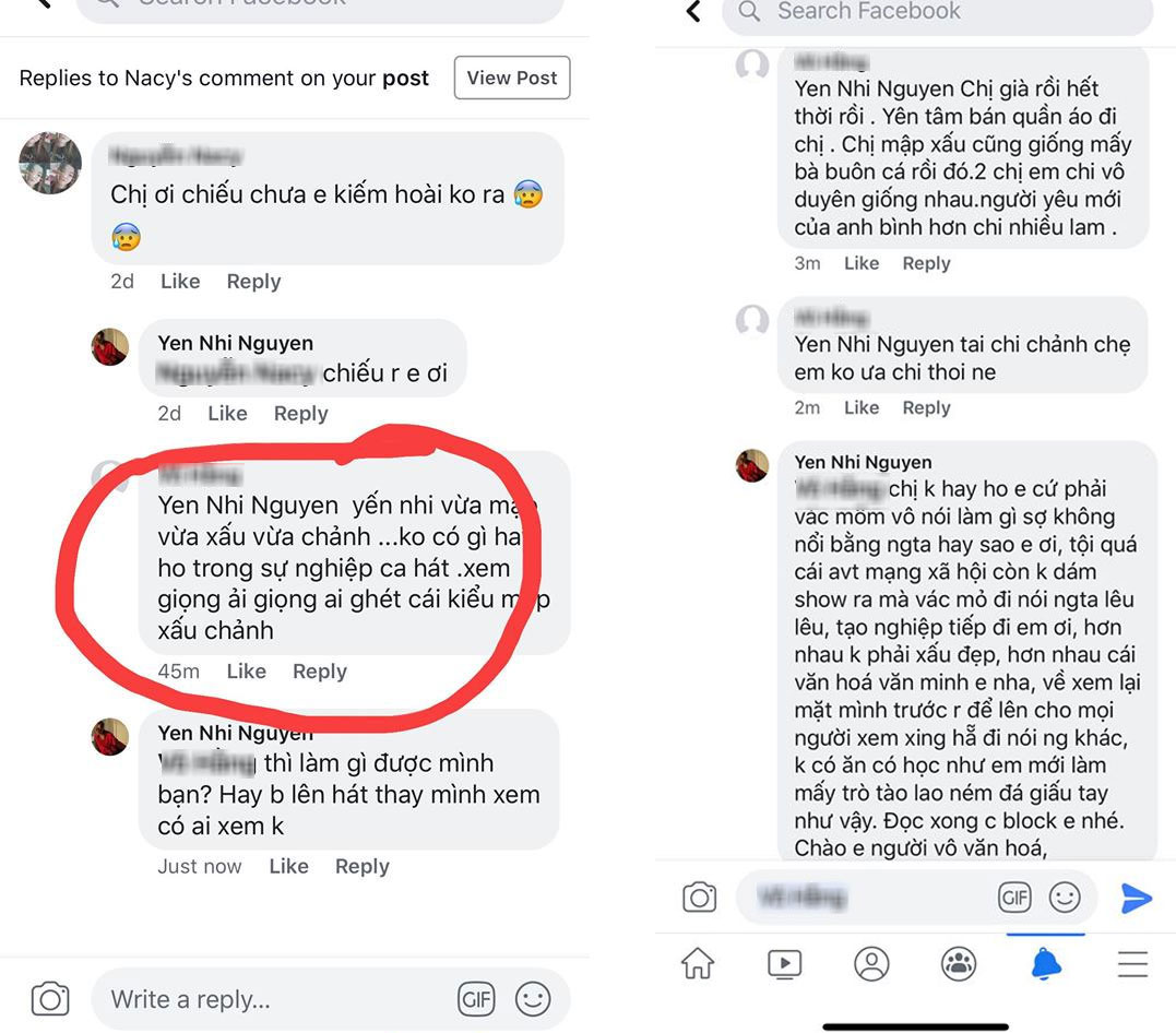 Cụ thể, khi bị chê: "Yến Nhi vừa mập, vừa xấu, vừa chảnh, không có gì hay ho trong sự nghiệp ca hát. Xem giọng ải giọng ai ghét cái kiểu mập xấu chảnh", nữ ca sĩ đã thẳng thắn đáp trả: "Thì làm gì được mình bạn? Hay bạn lên hát thay mình xem có ai xem không".