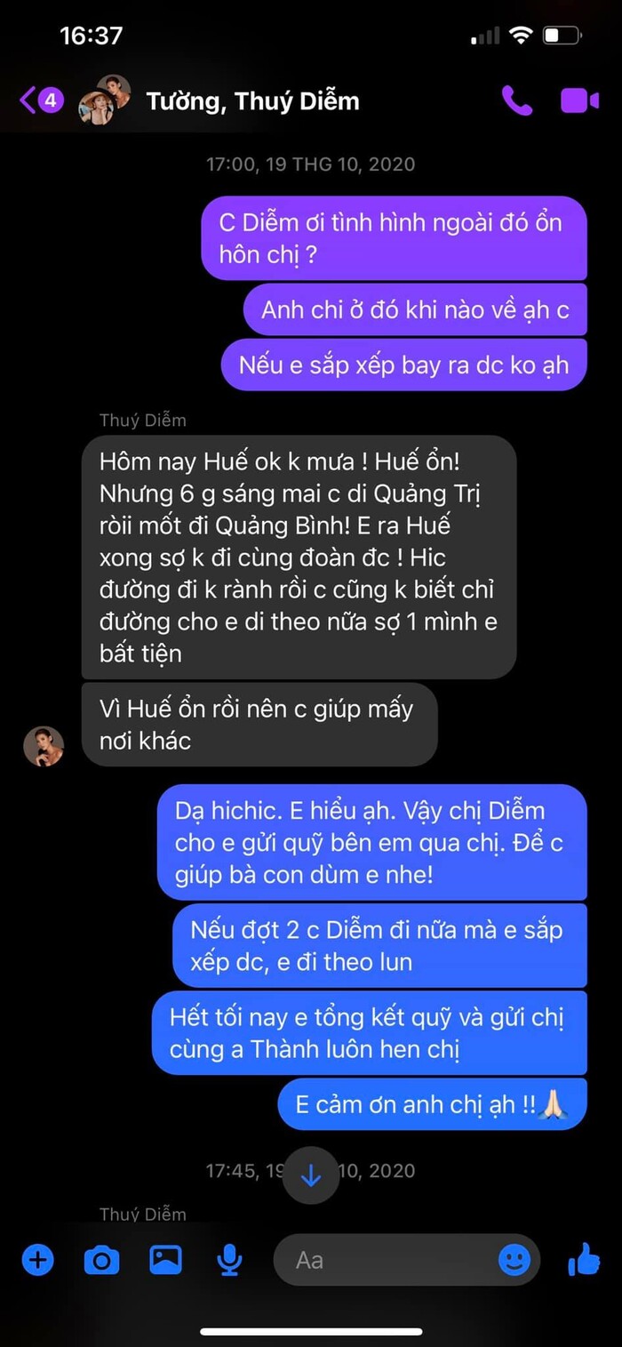 Tổng số tiền Sam kêu gọi được là 125.923.000 đồng (trong đó Sam đóng góp 50 triệu đồng từ tiền cá nhân). Vì không có kinh nghiệm và chưa từng tự tổ chức chuyến đi từ thiện nào nên Sam hơi lúng túng, lo lắng về cách liên hệ, di chuyển tới địa phương để ủng hộ cho bà con miền Trung. Đúng lúc này, Sam biết thông tin anh chị Lương Thế Thành, Thúy Diễm đã có kế hoạch tổ chức, đang thực hiện chuyến đi và liên hệ được với địa phương. Cho nên Sam đã chuyển toàn bộ số tiền quyên góp được cho vợ chồng anh chị. Vì cứu người hơn cứu hoả nên Sam chỉ mong sao giúp cho bà con được nhanh nhất. Bản thân Sam cũng muốn đích thân mình ra Miền Trung cùng với chị Diễm hỗ trợ cho chuyến từ thiện. Nhưng do lịch di chuyển liên tục của bên đoàn chị Diễm mà Sam và chị không thể sắp xếp được lịch trình gặp nhau.