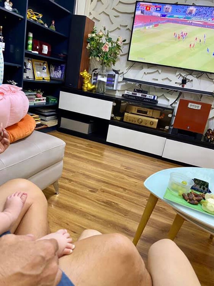 Chưa dừng lại ở đó, vào tối 11/11, Vy Oanh tiếp tục khoe khoảnh khắc xem đá bóng cùng ông xã doanh nhân và tự tin khẳng định chắc chắn sẽ thắng 100% nhưng không phải nói về tỉ số bóng đá, mà đề cập đến các mâu thuẫn riêng của bản thân.