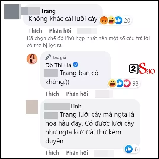 Giữa những lời khen ngợi Đỗ Thị Hà, một tài khoản mạng thu hút sự chú ý đặc biệt khi thẳng thừng chê bai người đẹp. "Không khác cái lưỡi cày", người này nói về gương mặt Hoa hậu Việt Nam 2020.