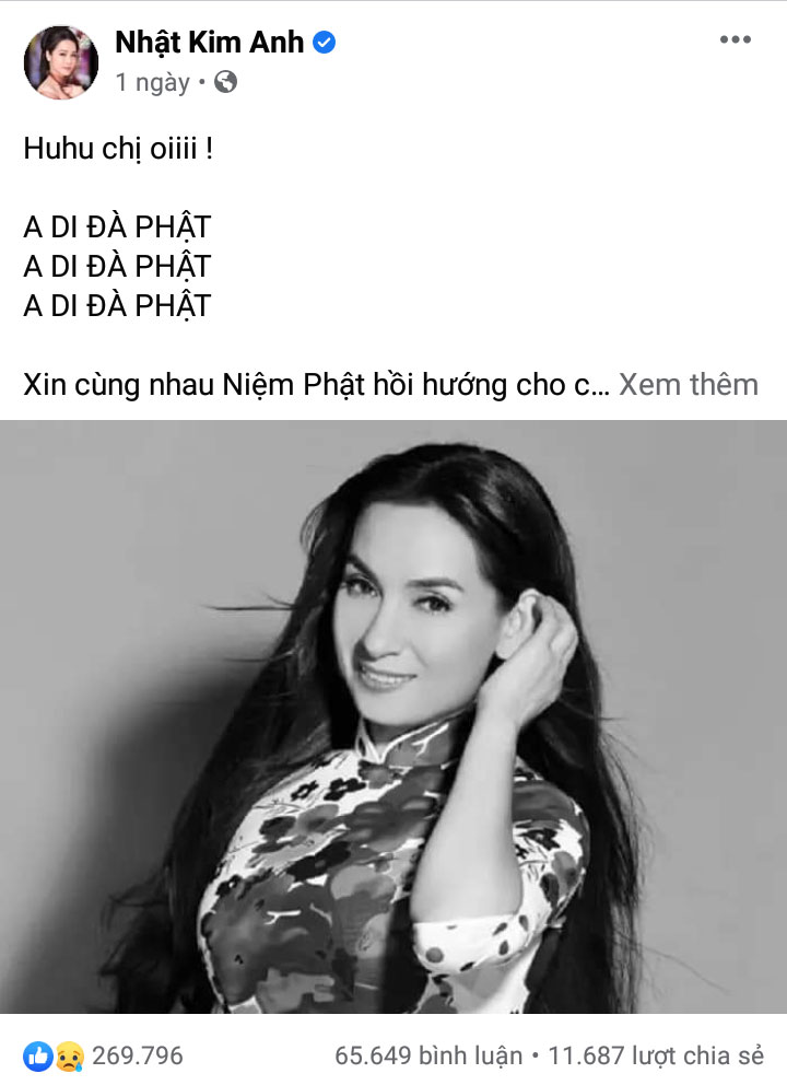 Sau khi Phi Nhung qua đời, Nhật Kim Anh đã không giấu được đau buồn. Để chia buồn với gia quyến cũng như bày tỏ nỗi xót thương của mình, nữ diễn viên đã gửi 5 triệu cho chùa với nội dung: "Phóng sanh cho chị Phi Nhung". Ấy thế nhưng, hành động của cô khiến một số người không vừa mắt.