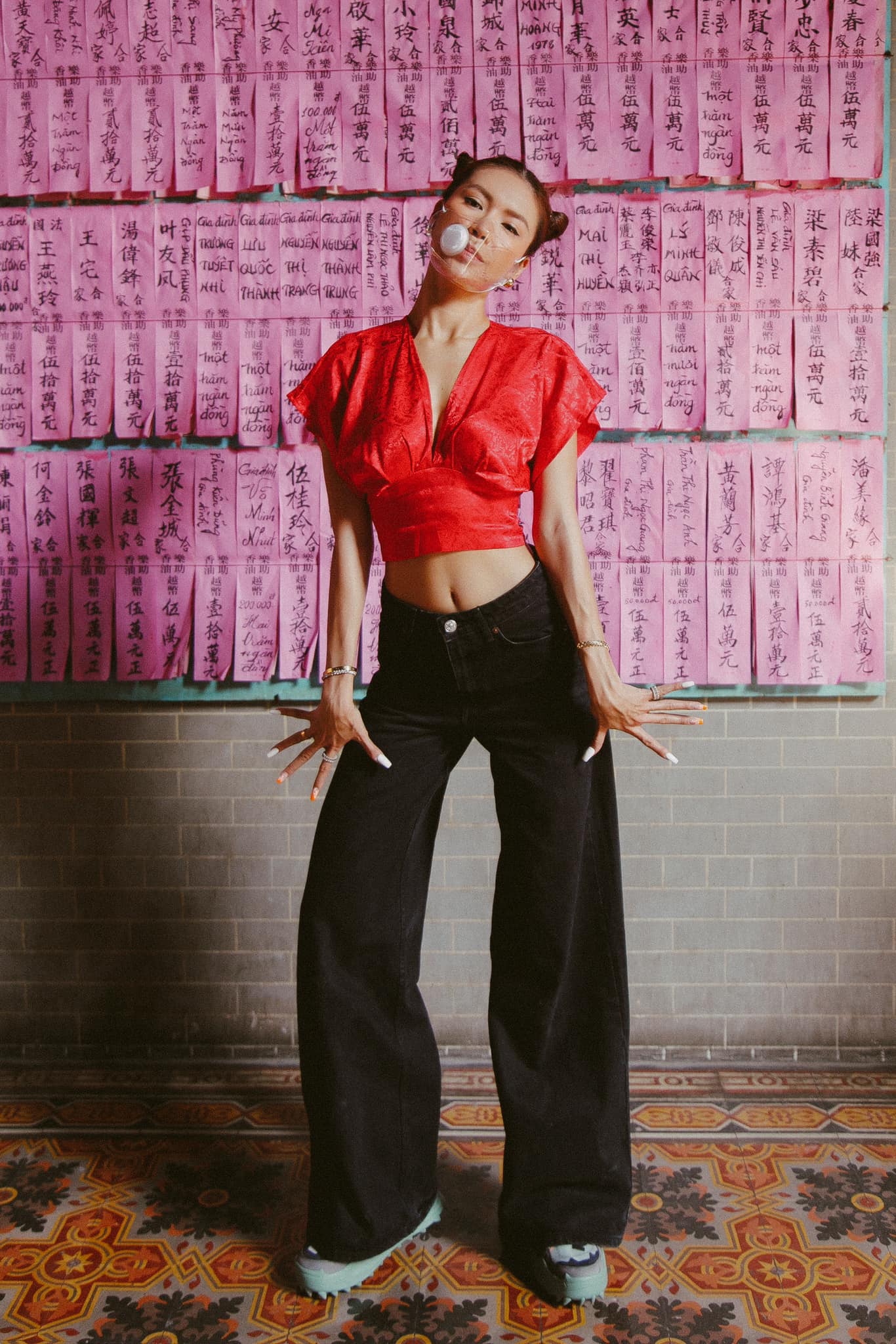 - Hôm bữa Chi Pu kín đáo hơn vậy mà còn bị chửi tơi bời hoa lá, nay chị hở luôn cả rốn thế kia.