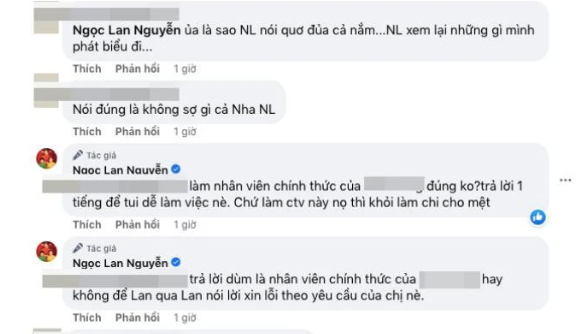 Khán giả này tiếp tục bình luận: "Ủa là sao Ngọc Lan nói quơ đũa cả nắm... Ngọc Lan xem lại những gì mình phát biểu đi... Nói đúng là không sợ gì cả nha Ngọc Lan".