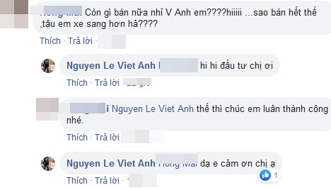 Trong số nhiều bình luận dưới bài đăng bán xe của Việt Anh, một người quen biết của nam diễn viên đã thẳng thắn đặt ra câu hỏi: "Còn gì bán nữa nhỉ Việt Anh... Em ơi? Sao bán hết thế, tậu xe sang hơn hả em?". Đáp lại câu hỏi có phần khó xử này, "Phan Hải" cười cho biết: "Em đang đầu tư chị ơi".