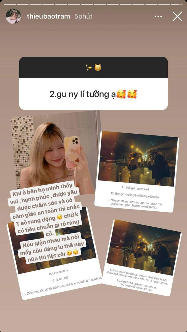 Dính liên hoàn drama tình ái, cuối cùng Thiều Bảo Trâm chỉ mong 1 điều đơn giản: "Đó là một người mà chỉ cần nhìn thấy thôi thì mọi muộn phiền đều tiêu tan. Mình chẳng cần gồng mình lên tỏ ra là mình mạnh mẽ. Có thể tựa vai họ mà khóc, cười như 1 đứa trẻ mà chẳng cần che giấu cảm xúc".
