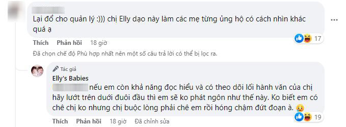 Đối mặt với những bình luận tiêu cực, Elly Trần cho biết cô cảm thấy chuyện này khá bình thường vì cô từng kinh doanh thời trang nên hoàn toàn có thể tự làm trang phục cho con. Thế nhưng, công việc quá bận rộn nên người đẹp chọn kết hợp với các nhãn hàng để đôi bên cùng có lợi: "Chào mọi người, sáng giờ em lu bu chạy công việc ngoài đường nên có nhờ anh quản lý đăng giùm cái post cần tìm tài trợ đồ kids. Vì lâu rồi 3 mẹ con chưa chụp chung bộ hình nào mới hết nên em mong muốn sự chỉn chu. Concept lần này là dịp lễ hội cuối năm nên cần trang phục thiên về sự kiện một chút. Như mọi người đã biết, trước đây em cũng có cửa hàng thời trang dòng cao cấp cho trẻ em, và nhiều anh chị em nghệ sĩ cũng có liên hệ brand em xin tài trợ đồ cho con để quay chụp và em luôn sẵn lòng hỗ trợ.