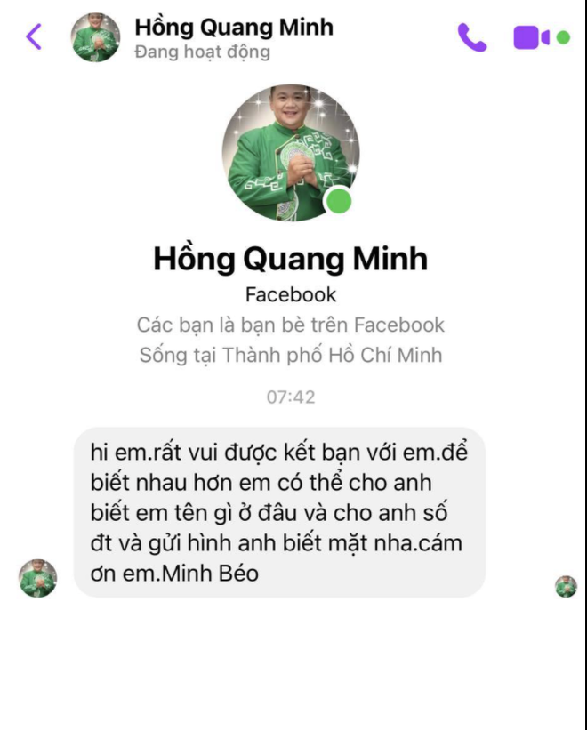 Hôm nay (5/5), thông tin diễn viên Tuấn Nguyễn tố Minh Béo lạm dụng tình dục thông qua việc tuyển nghệ sĩ đã khiến nhiều người bức xúc. Thậm chí, anh còn tung hẳn hàng loạt tin nhắn được cho là trao đổi trực tiếp với Minh Béo trên Facebook cá nhân. Đáng chú ý, Minh Béo còn dùng những lời lẽ thô tục khi đối chất với Tuấn Nguyễn về sự việc trên.