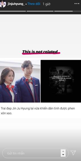 Trước sự quan tâm của đông đảo cư dân mạng, nam tài tử người Hàn đã nhanh chóng lên tiếng đính chính trên trang cá nhân và phủ nhận sự liên quan giữa những dòng trạng thái anh đăng tải và Chi Pu. Cụ thể, Jin Ju Hyung đã đăng tải hình ảnh chụp chung của mình và bạn gái cũ cùng dòng chú thích: "This is not related" (Chuyện này không liên quan).