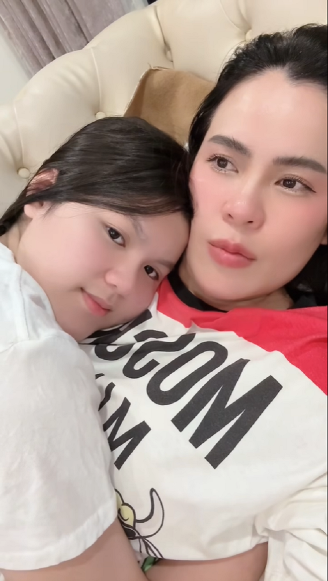 Cụ thể trên trang cá nhân Phương Lê đăng một đoạn video cô đang ôm con gái vào lòng và hai mẹ con thủ thỉ tâm sự. Trong clip, Phương Lê nói với con gái: “Có cô kia nói, con rất buồn, rất đau khổ, nói mẹ không tốt với con”.