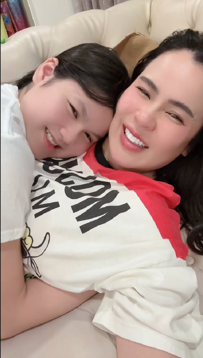 Phương Lê cũng hỏi con gái: “Mẹ có làm gì để con không vui không? Con có gì không hài lòng về mẹ và muốn mẹ thay đổi không”? Con gái của Phương Lê trả lời: “Không. Con thích mẹ như bây giờ, vui vẻ, thương. Con yêu mẹ".