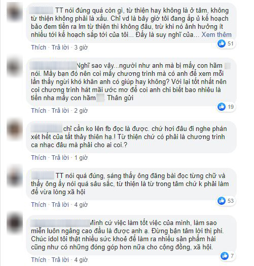 - Nghệ sỹ làm từ thiện nên làm từ tâm, đừng chỉ để đối phó với dư luận.