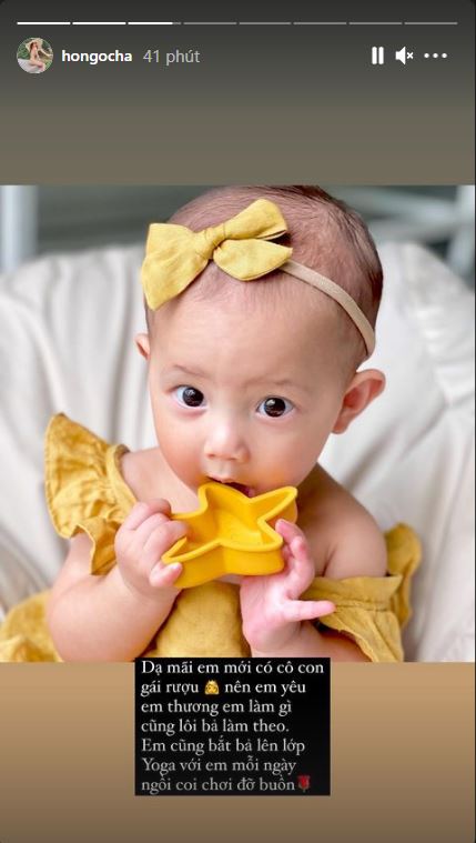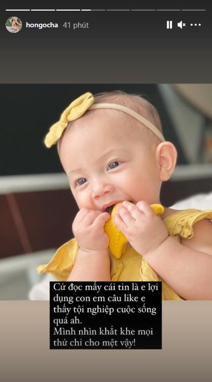 Bà mẹ 3 con chia sẻ: "Dạ mãi em mới có cô con gái rượu, nên em yêu em thương, em làm gì cũng lôi bả làm theo. Em cũng bắt bả lên lớp yoga với em mỗi ngày ngồi coi chơi đỡ buồn. Cứ đọc mấy cái tin là em lợi dụng con em câu like em thấy tội nghiệp cuộc sống quá à. Mình nhìn khắt khe mọi thứ chi cho mệt vậy.