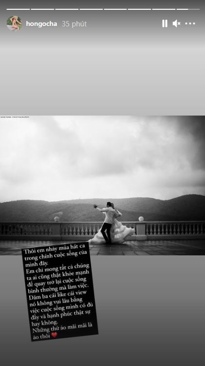 Mà mấy đứa nhỏ có được yêu thương cũng là niềm hạnh phúc của má nó mà. Không lẽ nó nhiều like hơn em mà em ghét, kỳ. Thôi em nhảy múa ca trong chính cuộc sống của mình đây. Em chỉ mong tất cả chúng ta ai cũng thật khỏe mạnh để quay trở lại cuộc sống bình thường mà làm việc. Dăm ba cái like, cái view nó không vui lâu bằng việc cuộc sống mình có đủ đầy và hạnh phúc thật sự hay không. Những thứ ảo mãi mãi là ảo thôi".