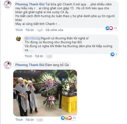 Còn giỗ 3 năm của bố cháu ai cấm được Chanh không được viết bất cứ gì trên facebook.. Danh chánh ngôn thuận khi cần nói gì Chanh luôn công khai trên facebook mà. Nói ít hay nhiều Chanh là người quyết khi đọc comment trên mạng. Chanh cứ nghĩ có ai đó đang ghen ngược sân hận với Chanh rồi comment phá Chanh. Hãy bỏ qua hết đi vì người ta cũng đã mất. Dù gì cũng qua hết rồi, đừng ngâm trong lòng sự trả thù Chanh bằng cách bôi nhọ trên mạng nói thật cũng không bao giờ làm ảnh hưởng gì tới Chanh đâu".