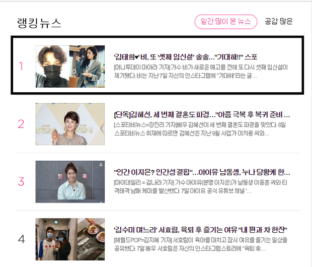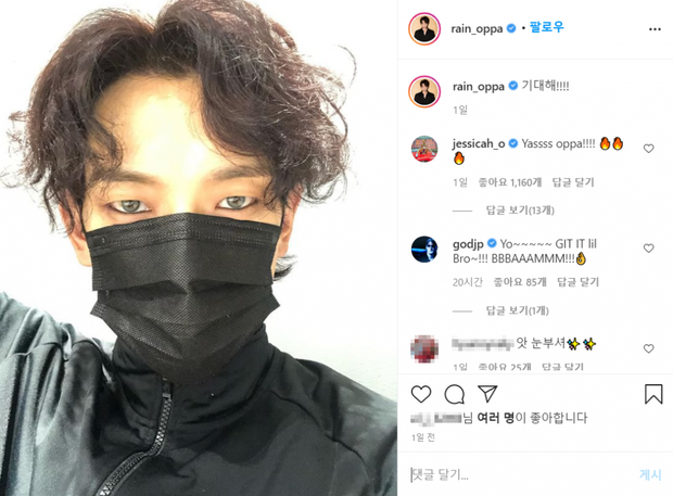 Mới đây, nam tài tử Bi Rain vừa có động thái gây dậy sóng MXH Hàn Quốc khi anh khoe diện mạo khác lạ với mái tóc xoăn, mắt đeo lens và được trang điểm kỹ lưỡng cùng dòng chú thích đầy ẩn ý: "Hãy chờ đón điều đó!". Chính chi tiết này đã khiến nhiều người cho rằng anh đang muốn bật mí điều gí đó với công chúng, thậm chí rất có thể giọng ca "Rainism" muốn ám chỉ về việc bà xã Kim Tae Hee đã mang thai con thứ 3. Tin đồn này được nhiều người quan tâm đến mức nằm trên Top 1 tìm kiếm trên cổng thông tin Naver sáng ngày 9/12.