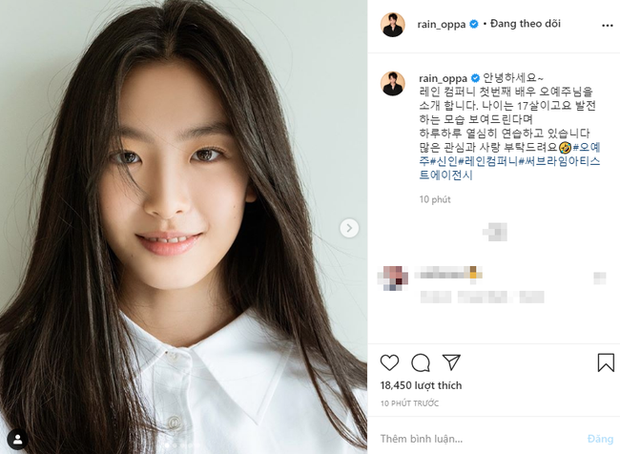 Trước đó, vào ngày 19/10, anh cũng từng khiến dân tình được một phen xôn xao khi đăng dòng trạng thái úp mở trên Instagram: "Tôi sẽ thông báo 1 điều đặc biệt vào 12h trưa mai". Trong khi người hâm mộ hồi hộp đón chờ Bi Rain sẽ tuyên bố chuyện bà xã của anh đã mang bầu em bé thứ 3 thì cuối cùng, nam ca sĩ lại khiến tất cả chưng hửng khi giới thiệu nữ diễn viên tân binh vừa ra mắt dưới trướng công ty anh.