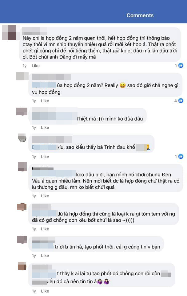 Cụ thể, Thái Trinh bức xức viết: "Muốn bình yên mà cái số sao á. Mình không biết bạn *** này là ai, mình vào profile bạn thấy bạn sinh 95 nhỏ hơn mình nhưng mình vẫn xưng bạn nha. Bạn đi comment rải rác khắp nơi từ tận năm ngoái rêu rao rằng chuyện yêu đương của mình là hợp đồng PR. Mình nhịn không thèm nói rồi vì mấy thứ bịa đặt vớ vẩn như này mình gặp hoài không đáng chấp, nhưng tới bữa nay hơn một năm sau bạn tiếp tục đi rêu rao tiếp ủa".