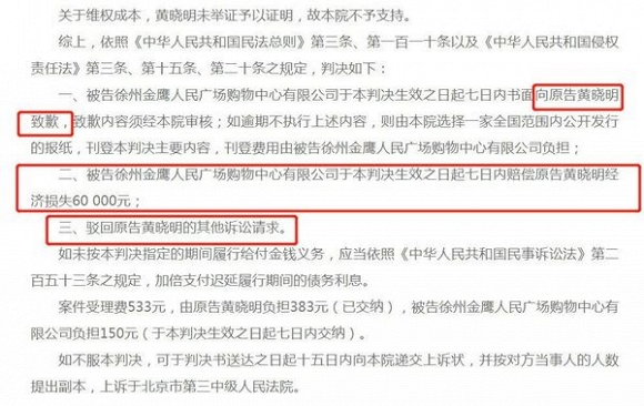 Hôm nay (4/7), phía tòa án Bắc Kinh đã ra thông báo chính thức tuyên bố Huỳnh Hiểu Minh và Angelababy thắng kiện. Huỳnh Hiểu Minh vì bảo vệ quyền lợi hợp pháp chính đáng của mình đã gửi đơn kiện lên tòa án, yêu cầu bị cáo công khai nhận lỗi, đồng thời phải bồi thường tổn thất kinh tế 150 ngàn NDT (tương đương 510 triệu đồng).