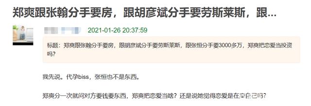 Bên cạnh việc chỉ trích, nhiều người còn đào lại vụ chia tay ồn ào giữa nữ diễn viên và tài tử Trương Hàn năm xưa, đồng thời nhận xét Trịnh Sảng coi chuyện tình yêu như một khoản đầu tư không hơn không kém.