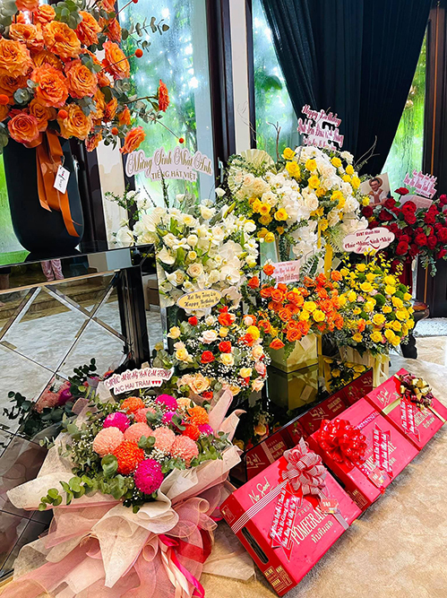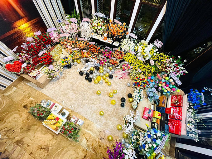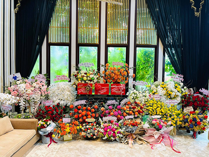 Các góc trong cơ ngơi ở quận 10 của ca sĩ Đàm Vĩnh Hưng xếp đầy hoa, quà do người thân, bạn bè và khán giả gửi tặng.