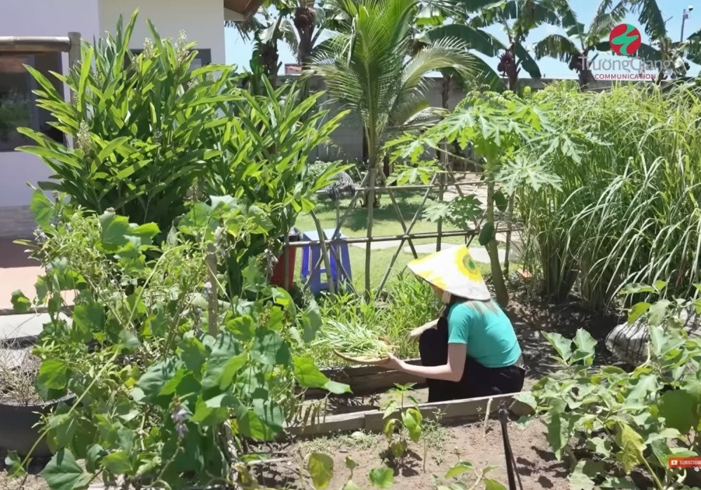 Trong căn biệt thự, Trường Giang cất công trồng nhiều loại rau, cây ăn quả như chanh dây, dừa, rau muống… để gia đình có nguồn thực phẩm sạch. Nam MC trồng các loại cây từ năm 2021 và đến hiện tại đã tươi tốt sau một năm chăm sóc. Mỗi đợt thu hoạch, anh trữ trong nhà và mang đi biếu người thân, bạn bè.