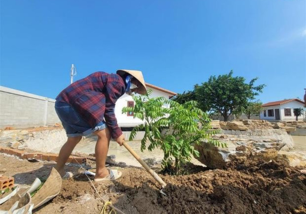 Ngôi nhà mất gần một năm hoàn thiện từ lúc lên bản vẽ đến thi công và bàn giao. Vốn yêu thích thiên nhiên, Trường Giang dành nhiều thời gian để tôn tạo, chăm sóc và trang trí cho khu nhà của mình. Anh tự tay nuôi cá và cuốc đất trồng các loại cây, rau củ quả, bày trí hệt như một khu vườn quê.