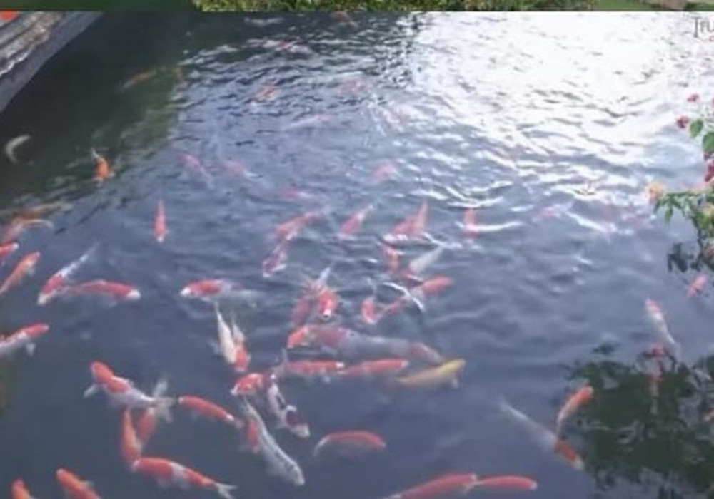 Ngoài mảng xanh sân vườn, Trường Giang còn xây hồ nuôi giống cá Koi giá trị. Phía sau khu nhà anh thiết kế một dòng suối, hai bên bờ trồng rau xanh mướt. Do công việc bận rộn nên nghệ sĩ thuê một cặp vợ chồng làm quản gia, trông coi, chăm sóc cơ ngơi này.