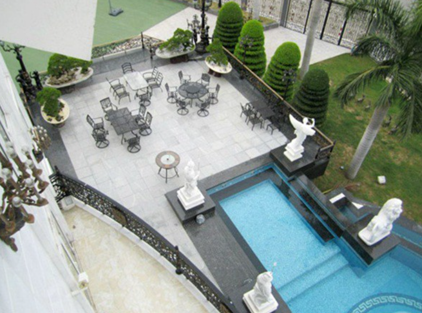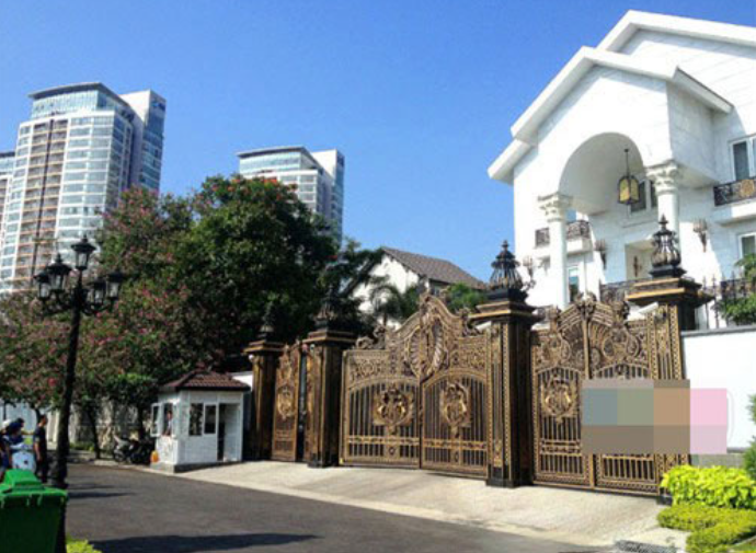 Biệt thự nhà chồng Tăng Thanh Hà rộng 500 m2, nằm ven sông, nội thất bên trong độc đáo với nhiều chi tiết dát vàng. Toạ lạc vị trí đẹp tại quận 2 (TP HCM), căn biệt thự nhà chồng Tăng Thanh Hà với ba mặt tiền nổi bật nhờ kiến trúc xa hoa, độc đáo.