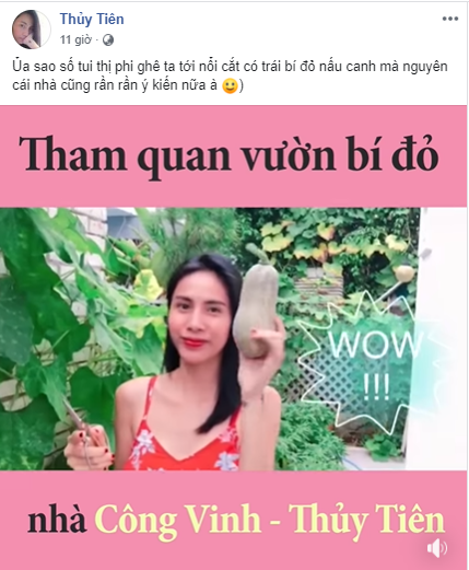 Thời gian gần đây, Thủy Tiên bắt đầu tập tành làm vlog, nội dung xoay quanh cuộc sống hằng ngày của cô và ông xã Công Vinh. Mỗi lần nữ ca sĩ đăng tải clip mới, cộng đồng mạng không chỉ xuýt xoa ngưỡng mộ cuộc sống hạnh phúc của cặp đôi "Beck - Vic" Việt Nam mà còn không ngừng khen ngợi nhan sắc của Thủy Tiên.