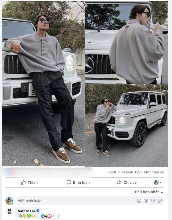 Tối 6/5, Sơn Tùng M-TP khiến cộng đồng mạng dậy sóng khi khoe hình ảnh cực chất bên chiếc xế hộp sang trọng và đắt đỏ mới tậu. Bên cạnh người hâm mộ đang "xỉu lên xỉu xuống" trước một Sơn Tùng "bên ngoài đẹp trai bên trong nhiều tiền", dân tình còn phát hiện Nathan Lee đã vào bình luận thể hiện sự yêu thích với đàn em. Bị "bắt quả tang" ngay tại chỗ, Nathan Lee đã bày tỏ rằng anh ngượng chín mặt.