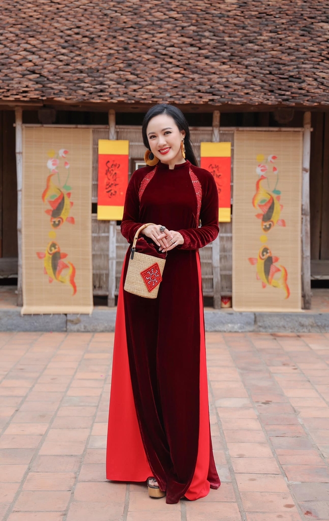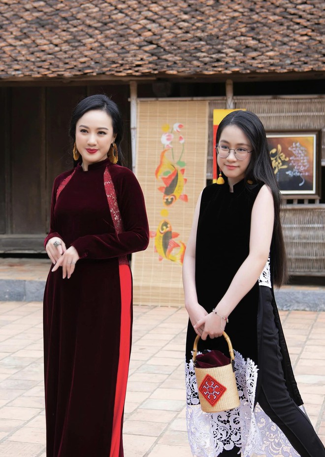 Song, ở những hình ảnh mới nhất, buổi quay hình của nữ BTV còn có sự góp mặt của một nhân vật đặc biệt quan trọng - con gái ruột của Hoài Anh. Nếu như nữ BTV chọn chiếc áo dài nhung đỏ thắm, khoe sắc vóc yêu kiều thì cô con gái lại diện một thiết kế áo dài cách điệu.
