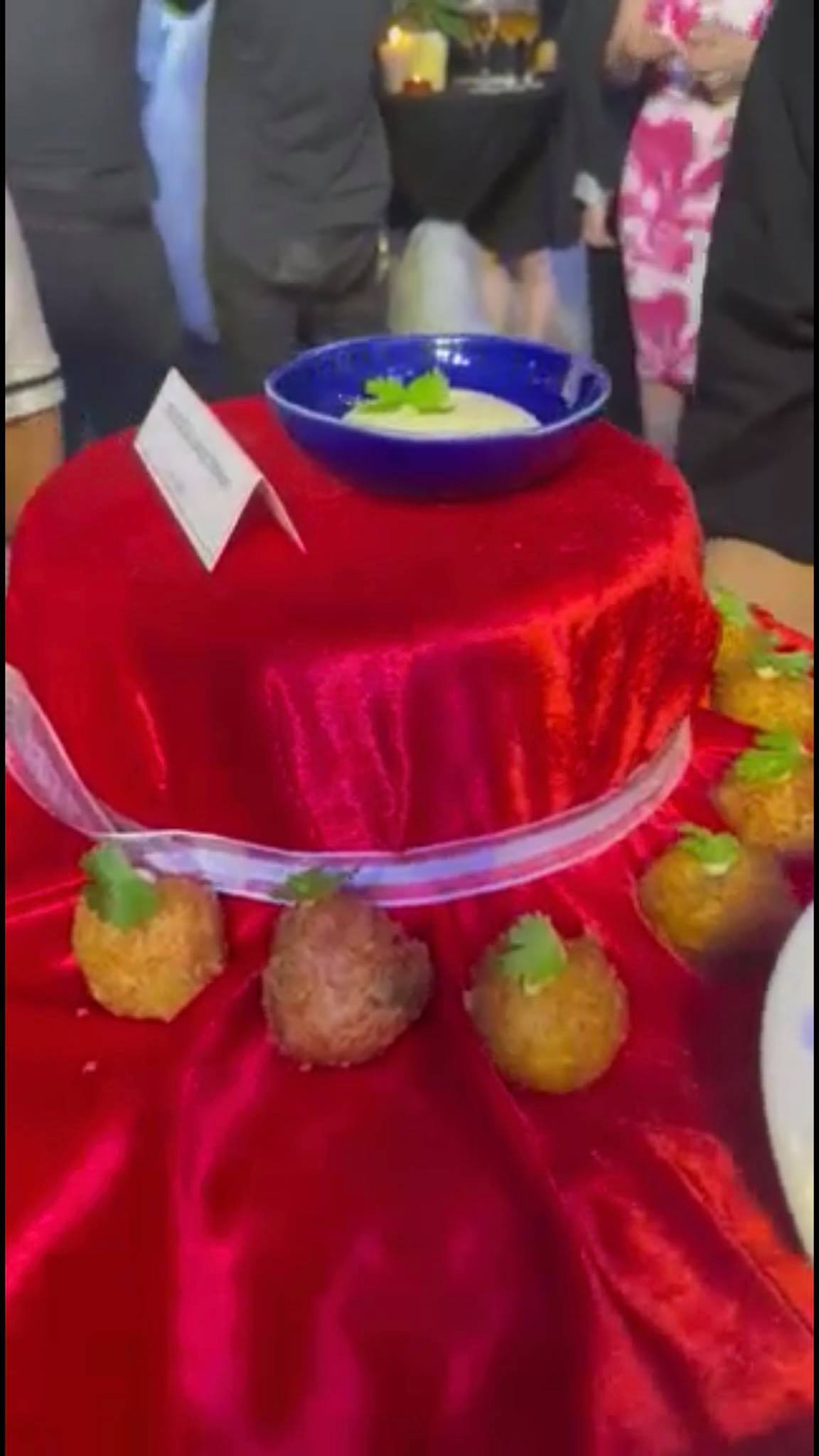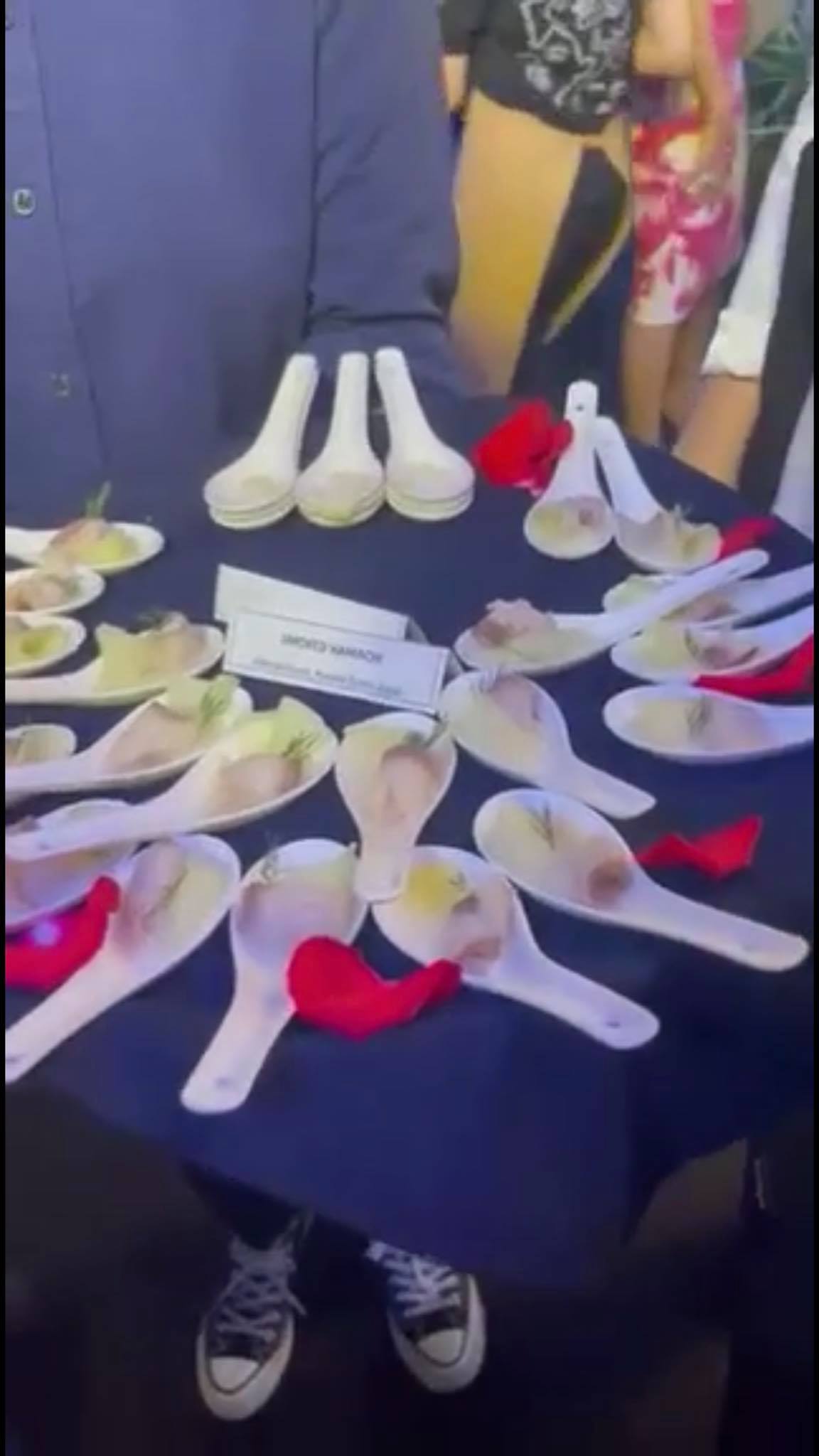 Theo những hình ảnh được tiết lộ từ người tham dự thì bữa tiệc diễn ra ở sảnh một nhà hàng và trong không gian khá nhỏ hẹp và nóng nực. Bên cạnh đó, đồ ăn chuẩn bị cho bữa tiệc cũng không hề đẳng cấp thượng lưu như chia sẻ.