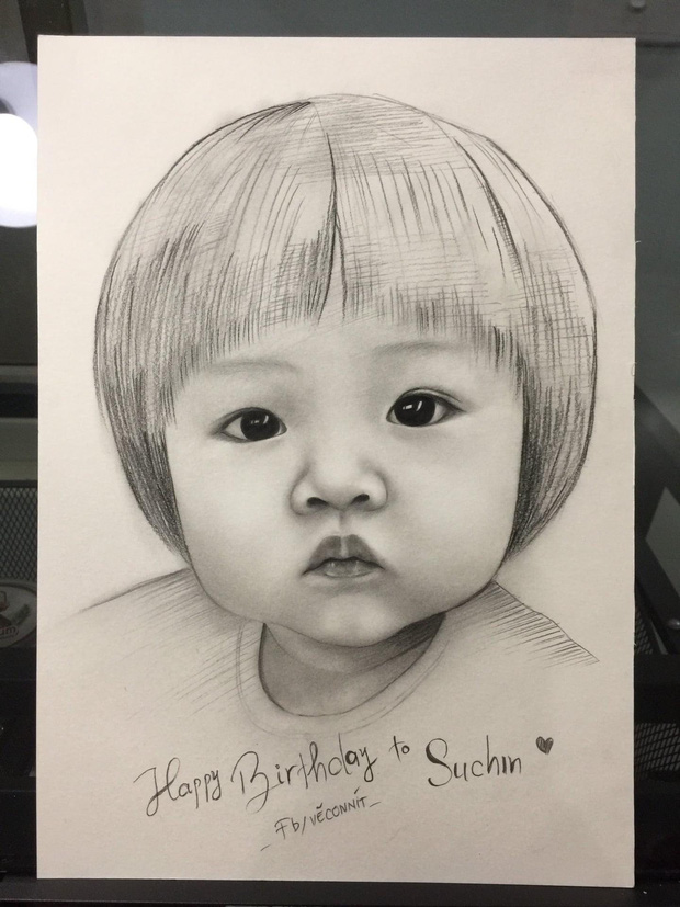 Ngay dưới bài viết ghi lại khoảnh khắc Suchin tròn 1 tuổi, rất nhiều khán giả đã liên tục gửi lời chúc, những món quà đặc biệt đến cô bé. Một trong số đó là bức tranh vẽ chân dung Suchin gây bão mạng. Chủ nhân của bức tranh chia sẻ: "Admin biết bé, cô bé búp bê từ lâu. Chiều nay lướt Facebook bất ngờ biết hôm nay là sinh nhật bé. Nên vẽ tặng bé 1 bức tranh để chúc mừng sinh nhật bé 1 tuổi. Cả nhà ai biết bé thì gửi 1 lời chúc sinh nhật bé nha".