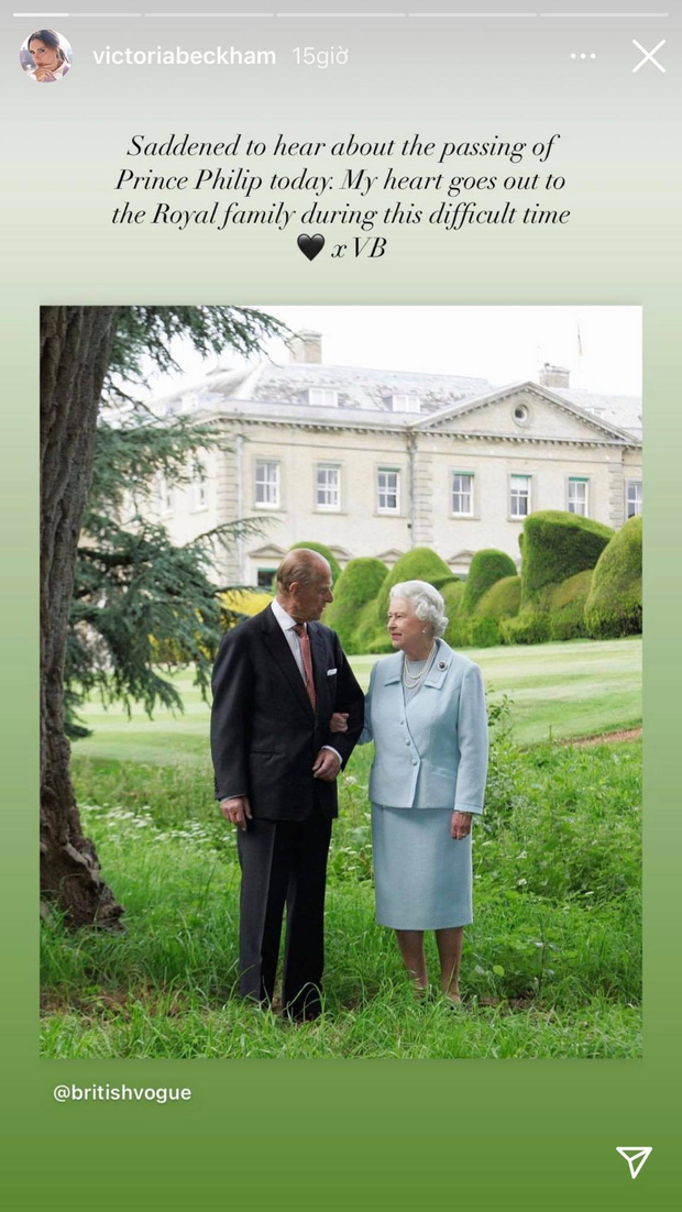 Sau khi Chính phủ và Hoàng gia xác nhận thông tin, gia đình Beckham cũng lần lượt chia sẻ hình ảnh Hoàng thân Philip để thể hiện lòng kính trọng đối với ông. David Beckham đã đăng loạt ảnh Hoàng thân cùng Nữ hoàng để tưởng nhớ ông, nhưng Victoria và các con lại bị chỉ trích dữ dội vì hành động kém duyên. Bà mẹ 4 con cũng đăng bài tưởng nhớ Hoàng thân trước đó, nhưng chỉ vài tiếng sau, cô đã chia sẻ ảnh 4 bố con David cởi trần chỉ quấn khăn tắm. Động thái này của Victoria khiến dân tình phẫn nộ và phản đối mạnh mẽ vì đây là thời điểm đau buồn của nước Anh.