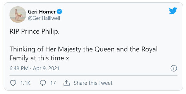 Nước Anh đang trải qua những ngày u buồn và tang thương khi nghe tin Hoàng thân Philip - chồng của Nữ hoàng Elizabeth II - qua đời ở tuổi 99. Nhiều sao nổi tiếng nước Anh đã cùng nhau tưởng niệm và bày tỏ sự thương tiếc vô hạn trước nỗi mất mát của Hoàng gia Anh.