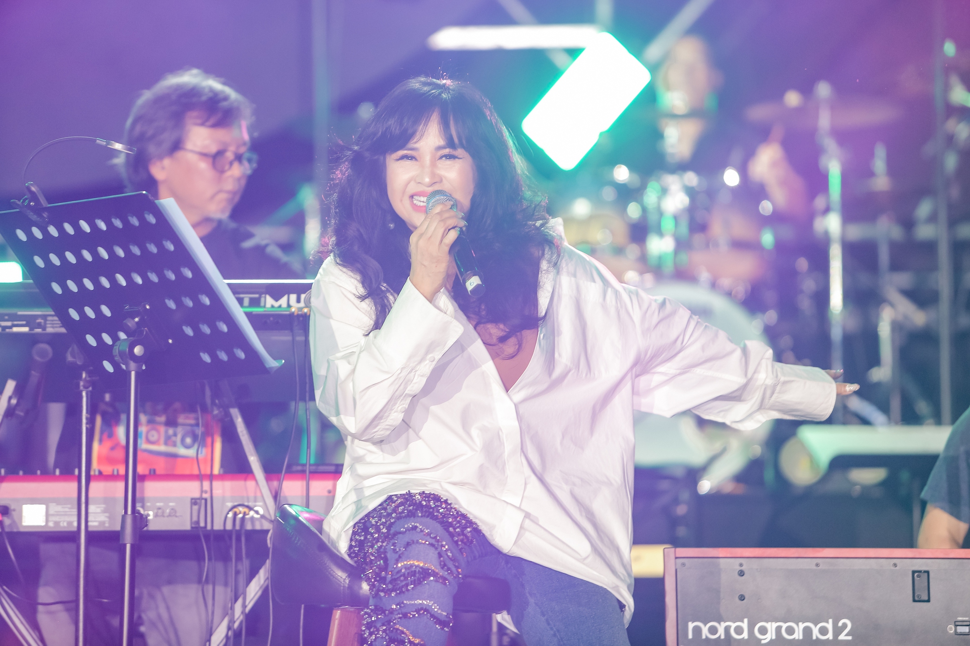 Khán giả không chỉ ấn tượng bởi giọng hát và phong cách biểu diễn chuyên nghiệp của Thảo Vân mà còn bất ngờ khi ca sĩ Thái Thuỳ Linh xuất hiện trên sân khấu để che mưa cho đàn chị vì cơn mưa mỗi lúc một nặng hạt.