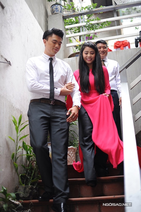 | Sau lễ ăn hỏi chiều nay, cặp đôi sẽ làm lễ Hằng thuận tại một ngôi chùa ở Bắc Ninh vào cuối tháng này. Lễ cưới được tổ chức vào cuối tháng 12. |