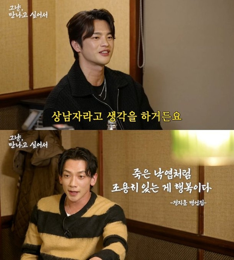 Sau khi nghe điều này, Seo In Guk bất ngờ chia sẻ: "Tôi nghĩ điều này thật sự tuyệt vời. Anh thật sự rất nam tính. Đàn ông đích thực không nên làm những điều khiến vợ buồn lòng". Bi Rain nói thêm: "Khi về nhà, tôi im lặng như một chiếc lá khô. Điều đó khiến tôi hạnh phúc".