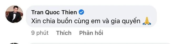 - Ca sĩ Quốc Thiên nhắn nhủ: "Xin chia buồn cùng em và gia quyến".