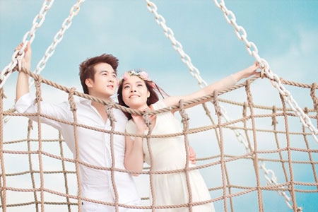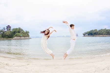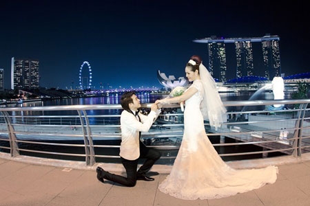 Bộ ảnh cưới của cặp đôi được thực hiện tại đảo quốc sư tử Singapore. |