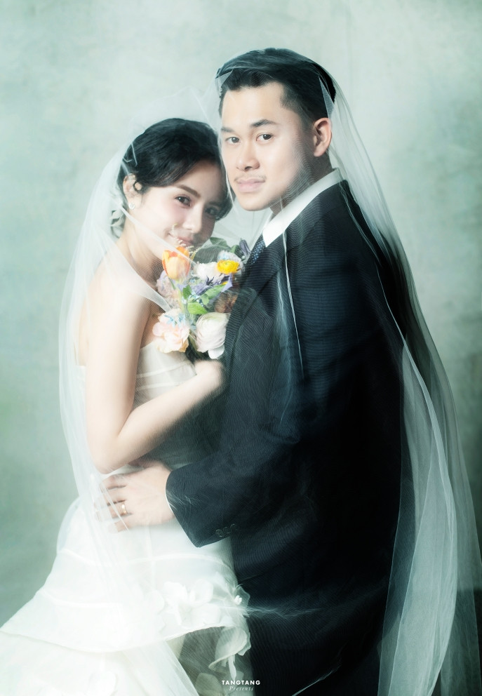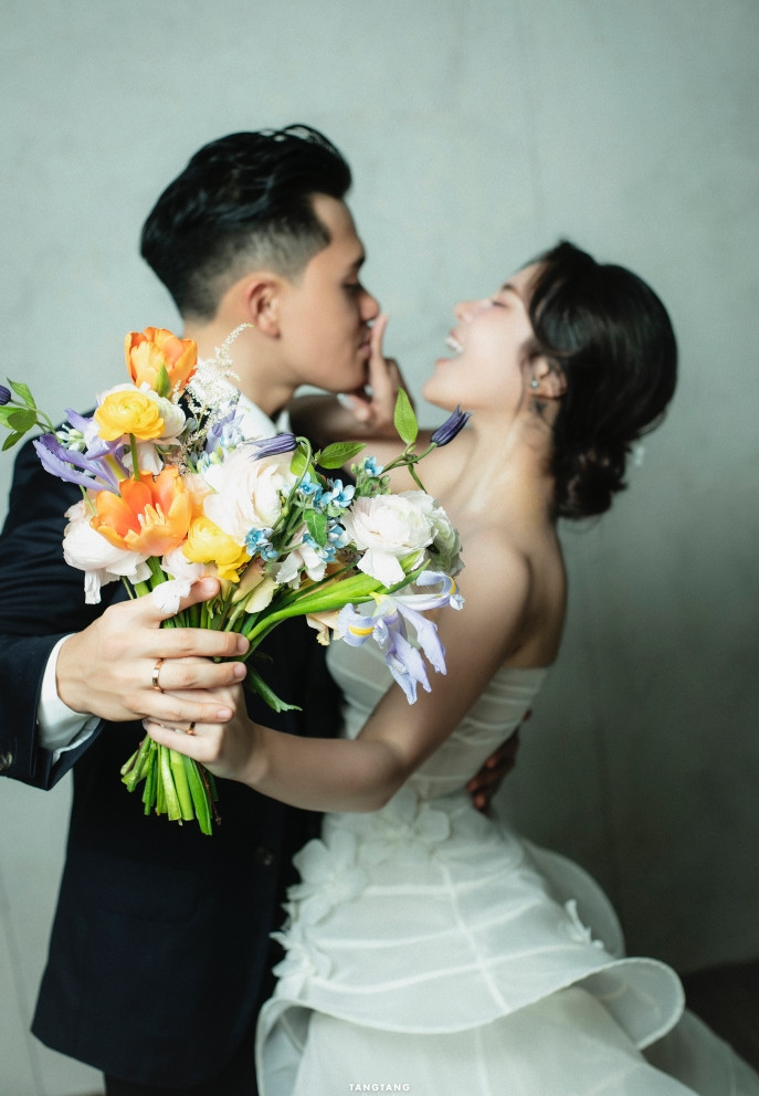 Do chồng không quen với việc phải chụp ảnh suốt nhiều giờ liền nên Thái Trinh quyết định chọn không gian nhẹ nhàng và thoải mái nhất có thể. Cặp đôi tận hưởng khoảnh khắc hạnh phúc, tự nhiên và đắm chìm trong tình yêu.