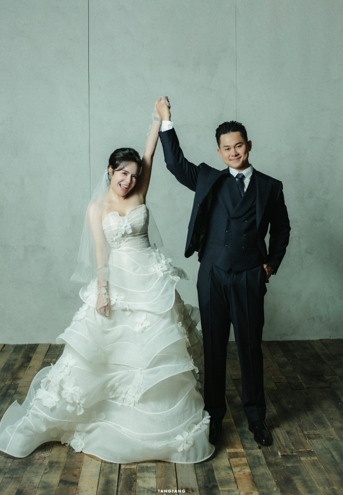 Ca sĩ Thái Trinh vừa chia sẻ ảnh cưới lãng mạn cùng ông xã. Theo nữ ca sĩ, bộ ảnh không chỉ là khoảnh khắc được lưu giữ mà còn khiến cô nhớ lại cảm xúc ngọt ngào của những ngày đầu, khi tình yêu còn ngây ngô nhưng tràn đầy hứng khởi.